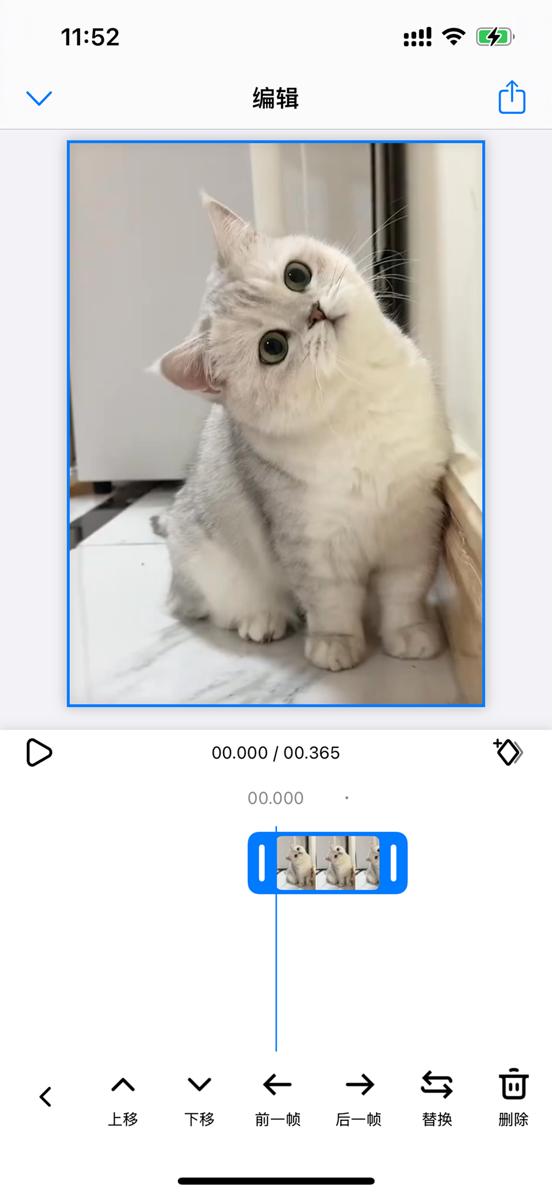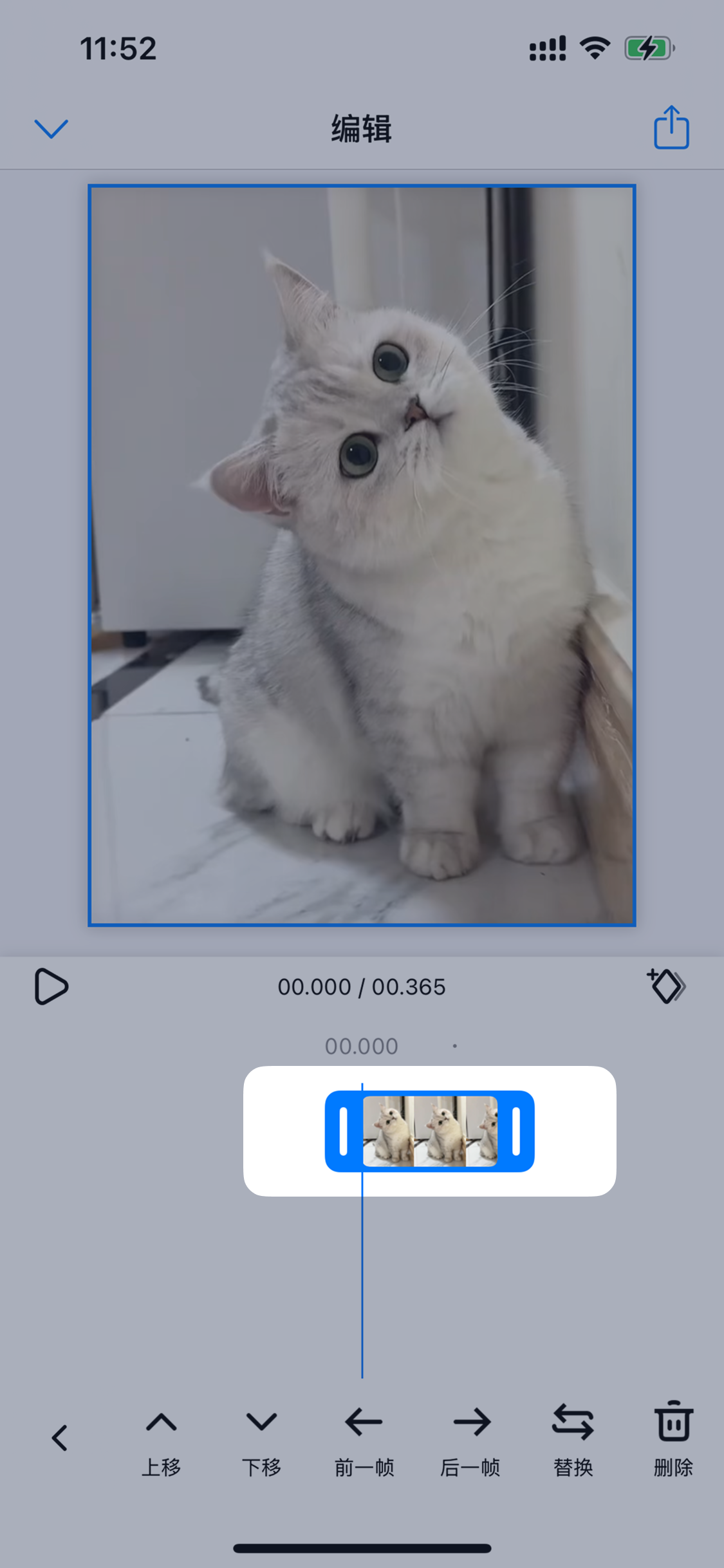 左右拖动当前素材的蓝色选框的左右指示器部分,即可对素材进行剪辑,选择想要保留的片段即可。