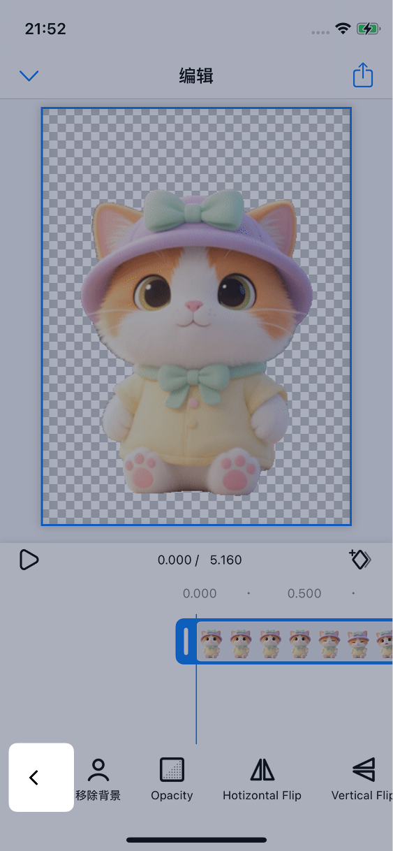 随后在弹出的页面中选择要编辑的素材,进入编辑器页面,点击底部工具栏的返回按钮即可取消选择当前素材: