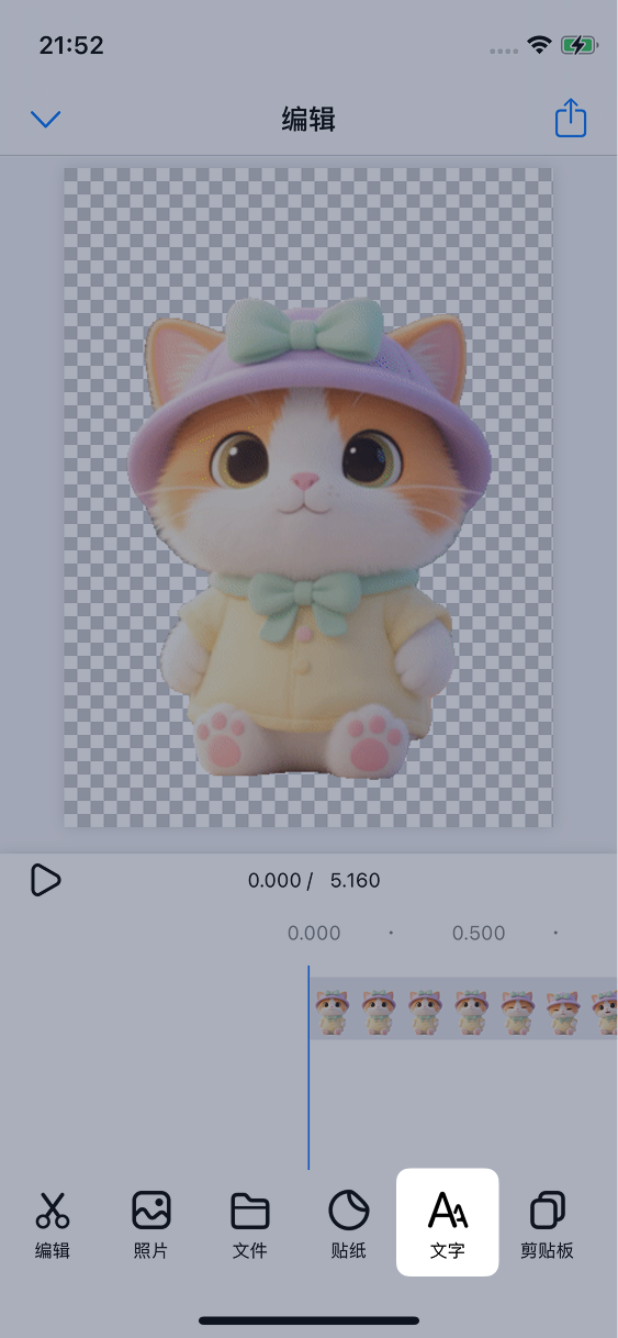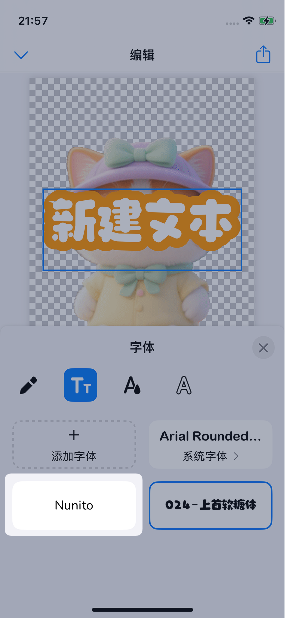 点击文字按钮来添加文本素材,然后点击第二个按钮来选择字体: