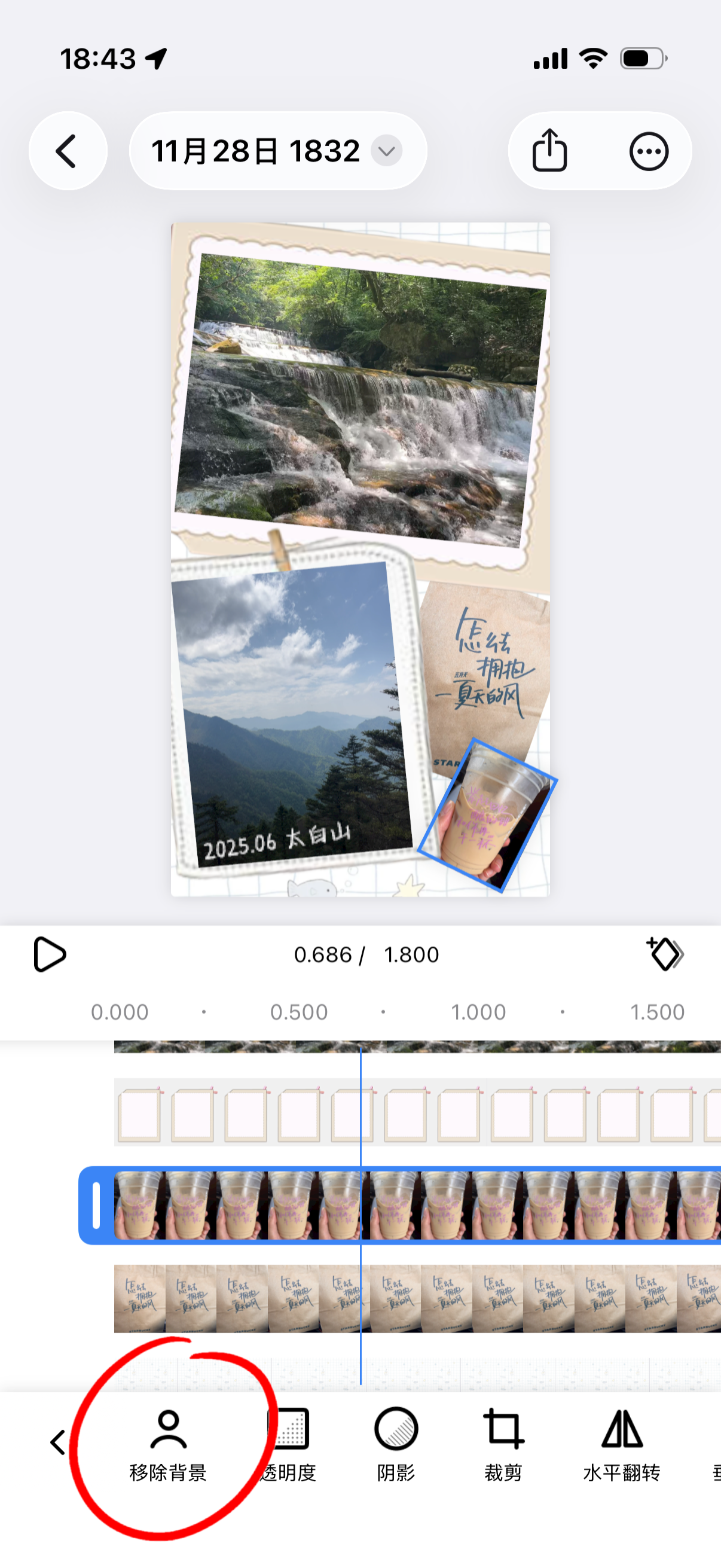 如果下载的相框图片带有背景,可以点击移除背景按钮来去除背景。